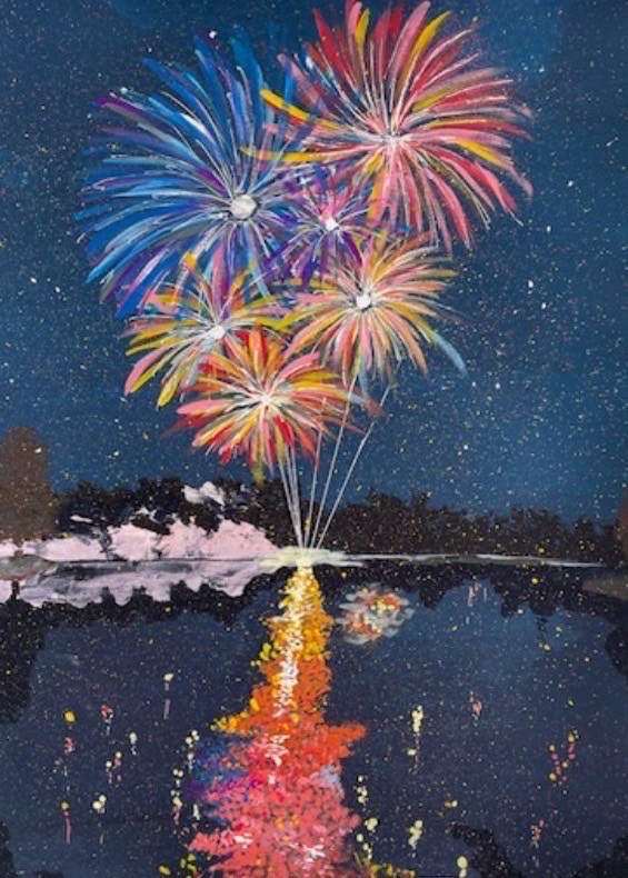 躍動感ある音楽に合わせ、色とりどりのレーザー光線と花火が夜空を彩ります!