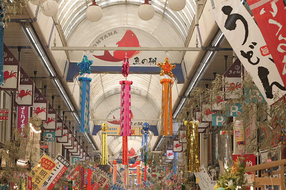 地元の人は「うぉんたな」の愛称で呼ぶ魚の棚商店街。