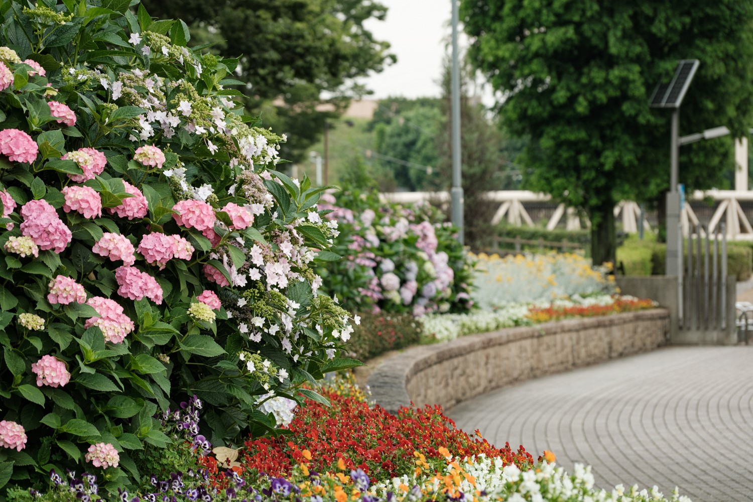 緑道であいのみちに隣接し、園内にはバーベキュー施設があります。